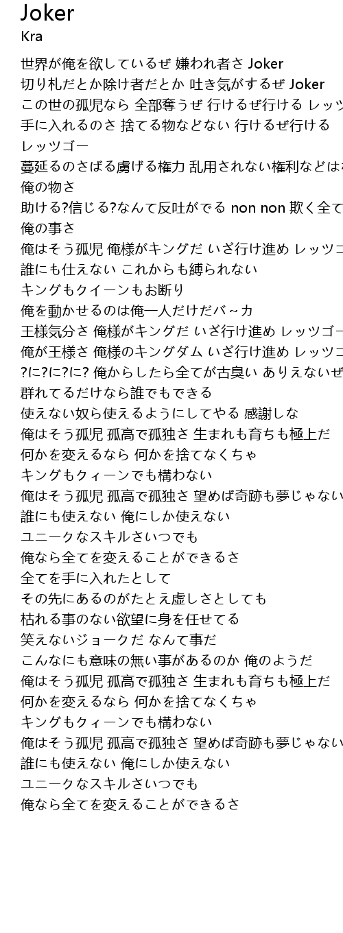 | 切り札だとか除け者だとか 吐き気がするぜ Joker | |