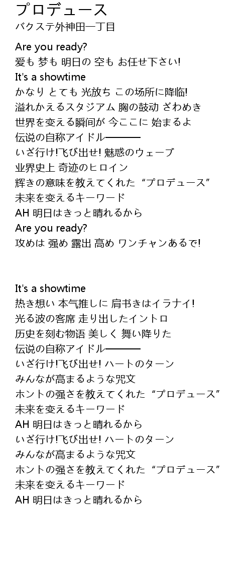 | Song | プロデュース |