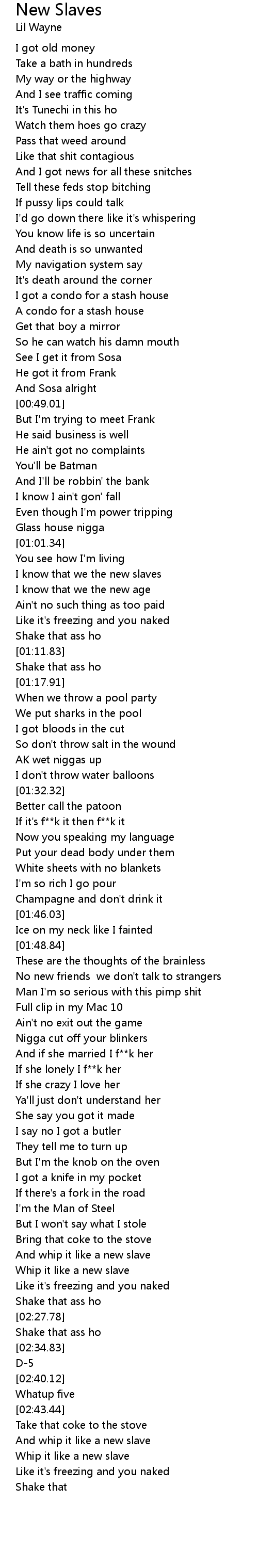 And whip it like a new slave |