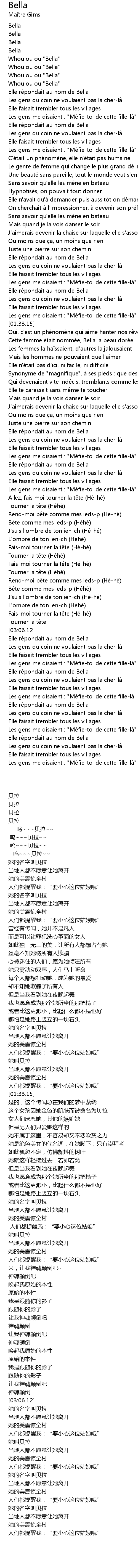 | [03:06.53] | Elle ré pondait au nom de Bella |