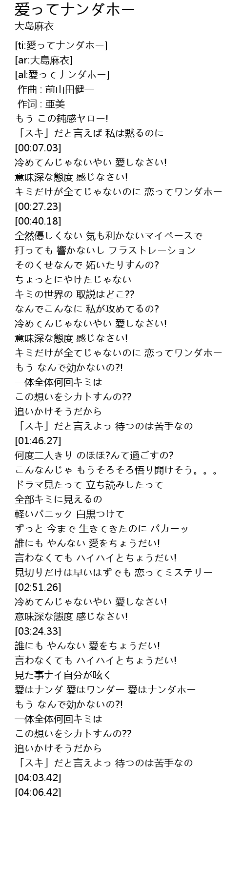 | [03:43.90] | 愛はナンダ 愛はワンダー 愛はナンダホー |