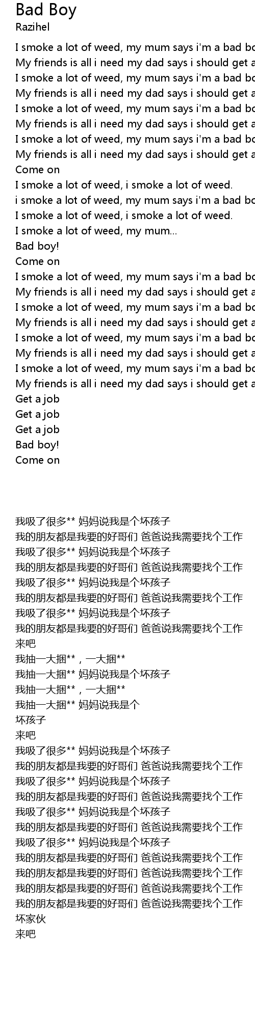 i smoke a lot of weed, my mum says i'm a bad boy. |