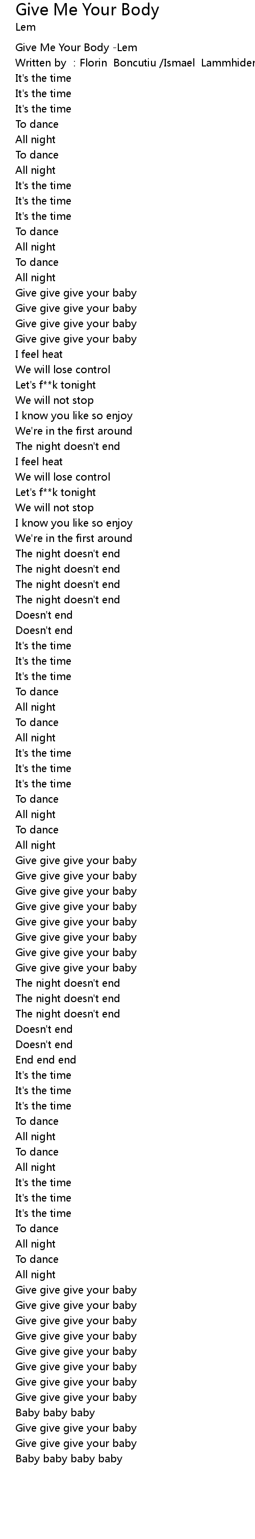 | [00:00.00] | Give Me Your Body Lem |