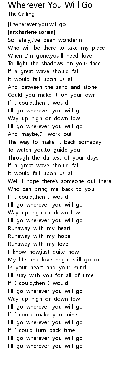 [ti:wherever you will go] |