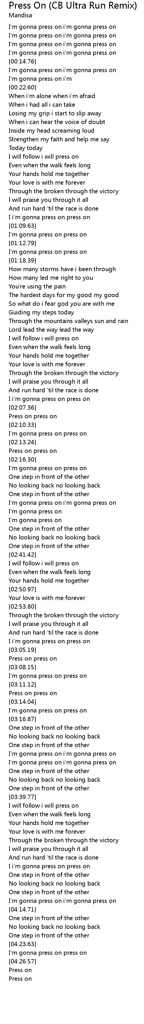 I'm gonna press on i'm gonna press on |