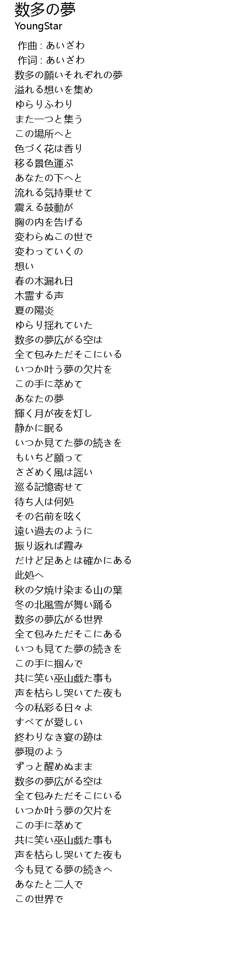 | Song | 数多の夢 |