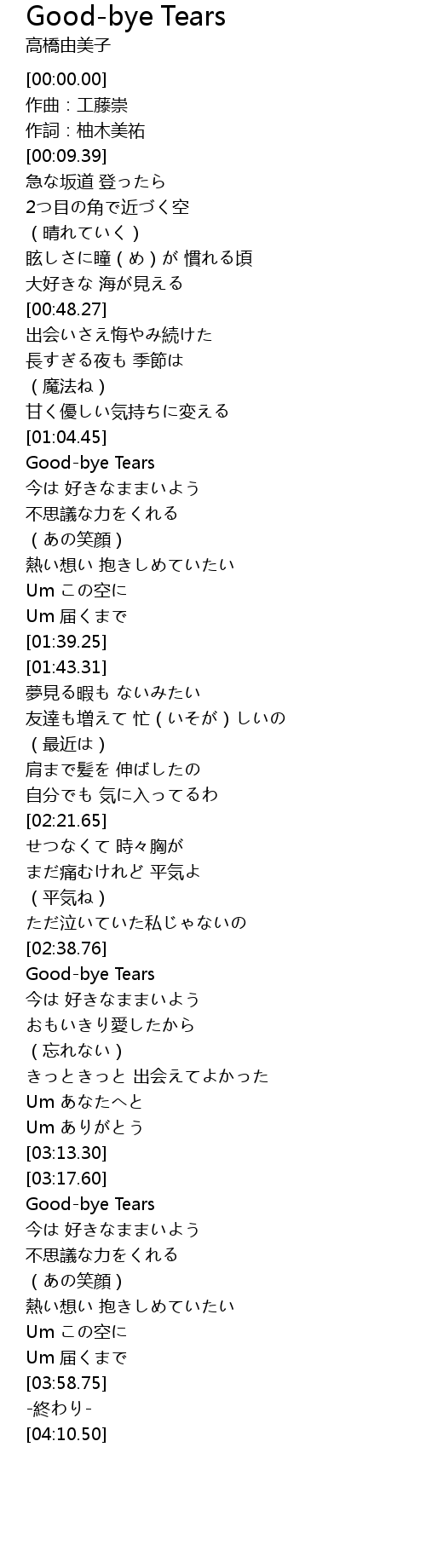 | [01:05.60] | Goodbye Tears |