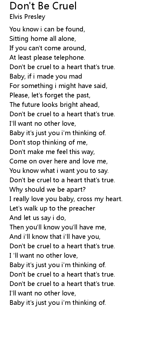 Don't be cruel to a heart that's true. |