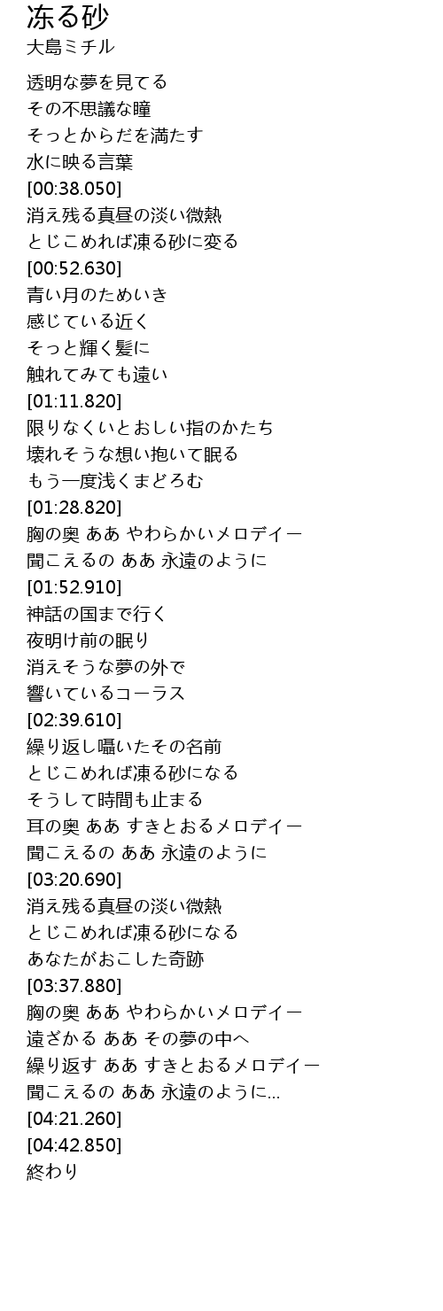 | [00:46.570] | とじこめれば凍る砂に変る |