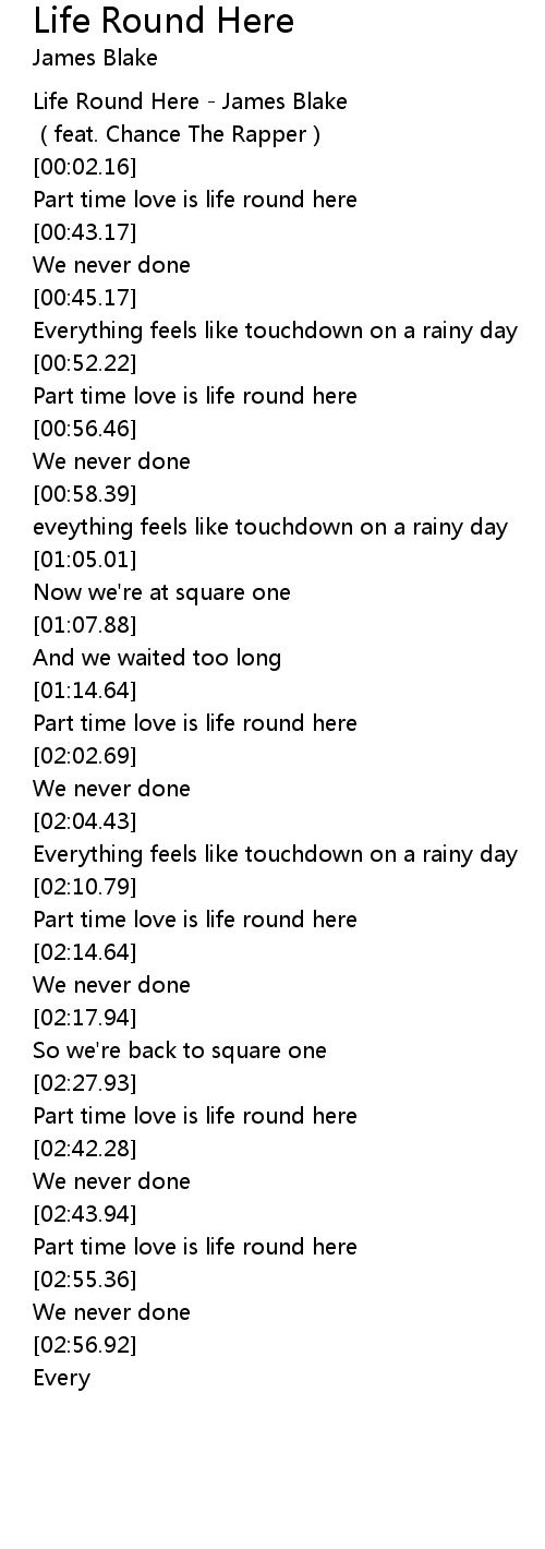 | [00:00.35] | Life Round Here James Blake |
