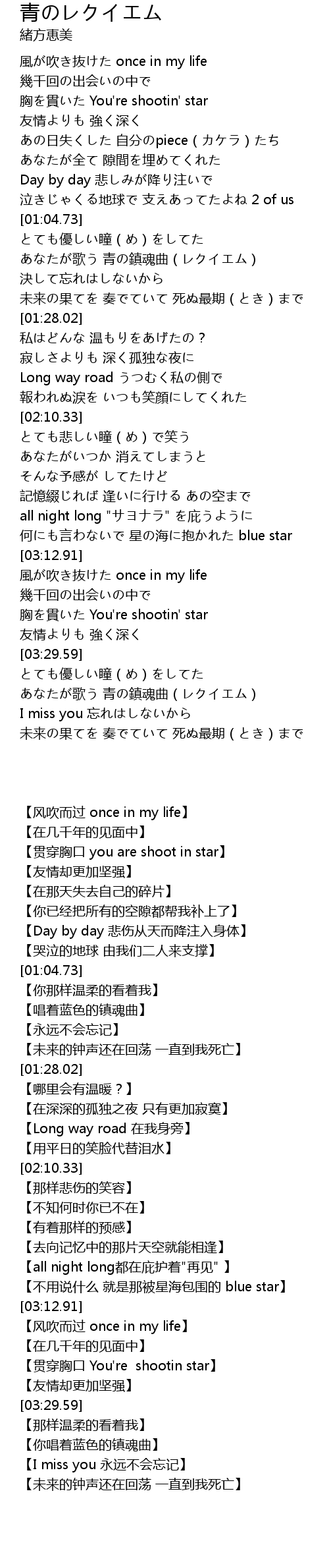 | [01:09.98] | あなたが歌う 青の鎮魂曲(レクイエム) |