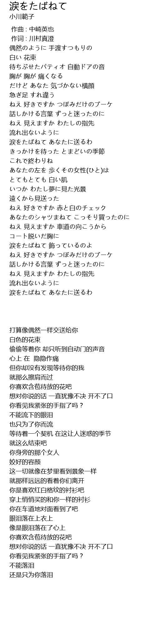 | [01:32.18] | 涙をたばねて あなたに送るわ |