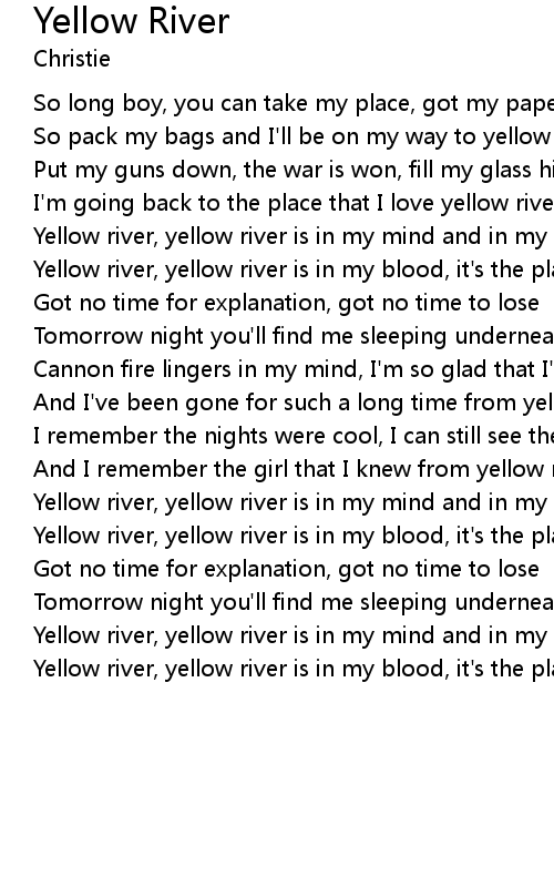 And I've been gone for such a long time from yellow river |