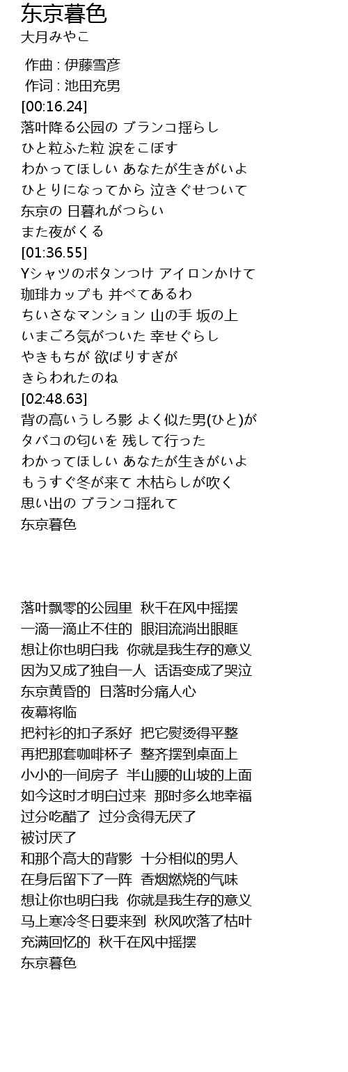 | [00:36.12] | 落叶降る公园の ブランコ揺らし |
