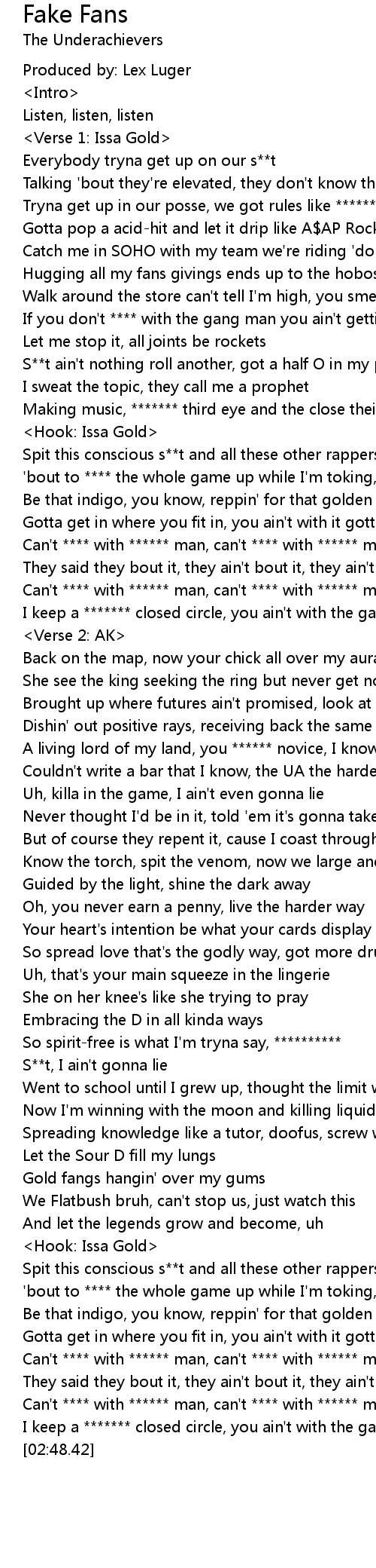 Tryna get up in our posse, we got rules like ******* Nazis |