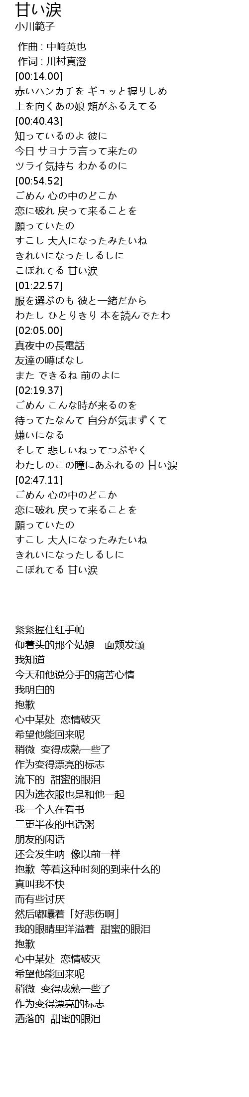 | [02:39.76] | わたしのこの瞳にあふれるの 甘い涙 |