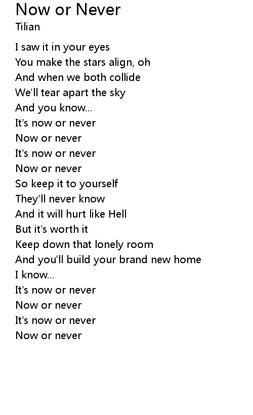 Now or never |