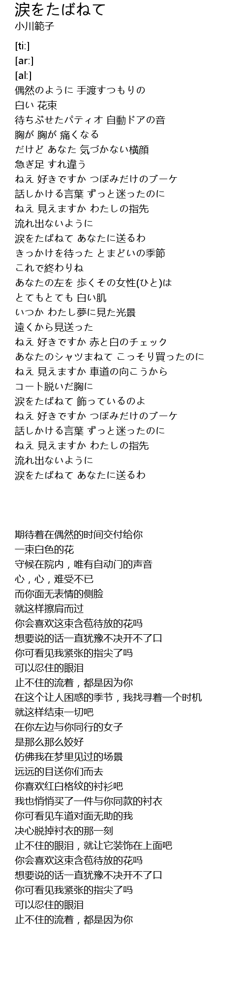 涙をたばねて あなたに送るわ |