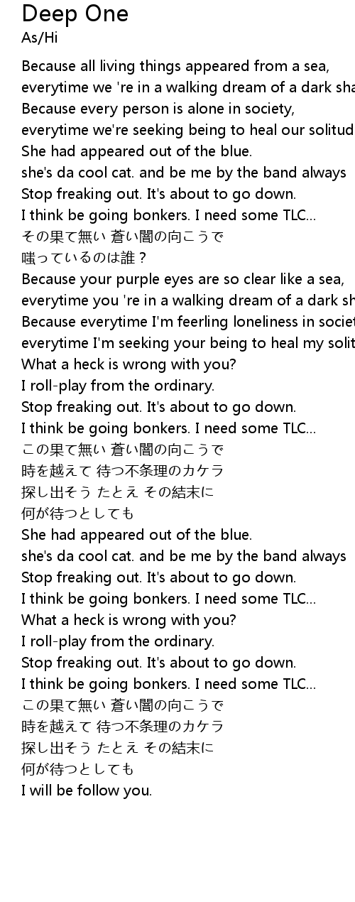 | [01:41] | Because your purple eyes are so clear like a sea, |