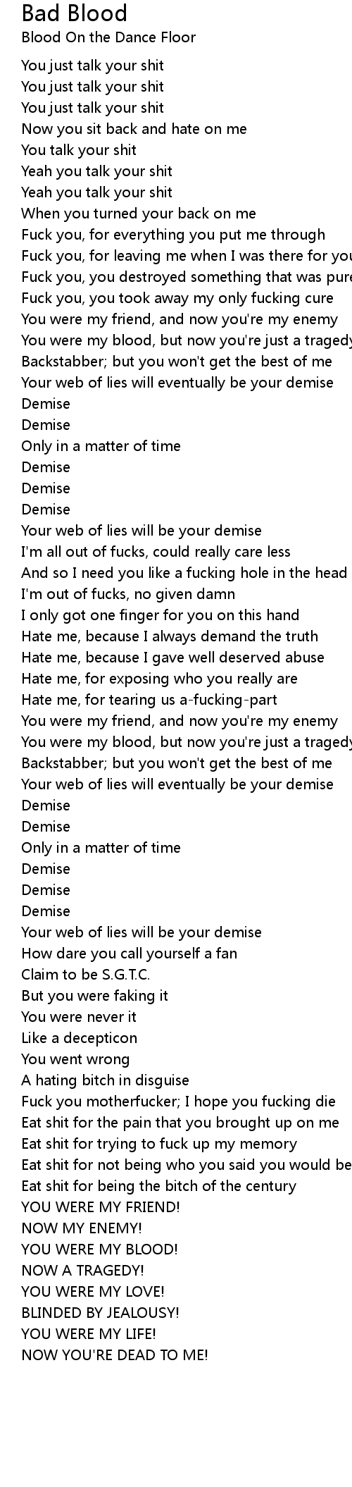 You were my blood, but now you're just a tragedy |