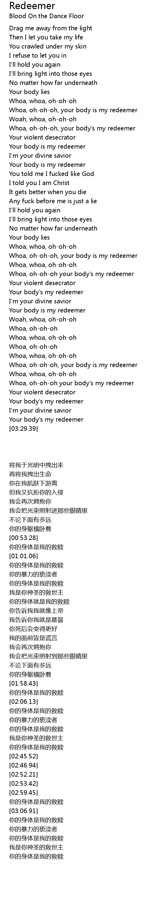 Whoa, oh-oh-oh, your body is my redeemer |