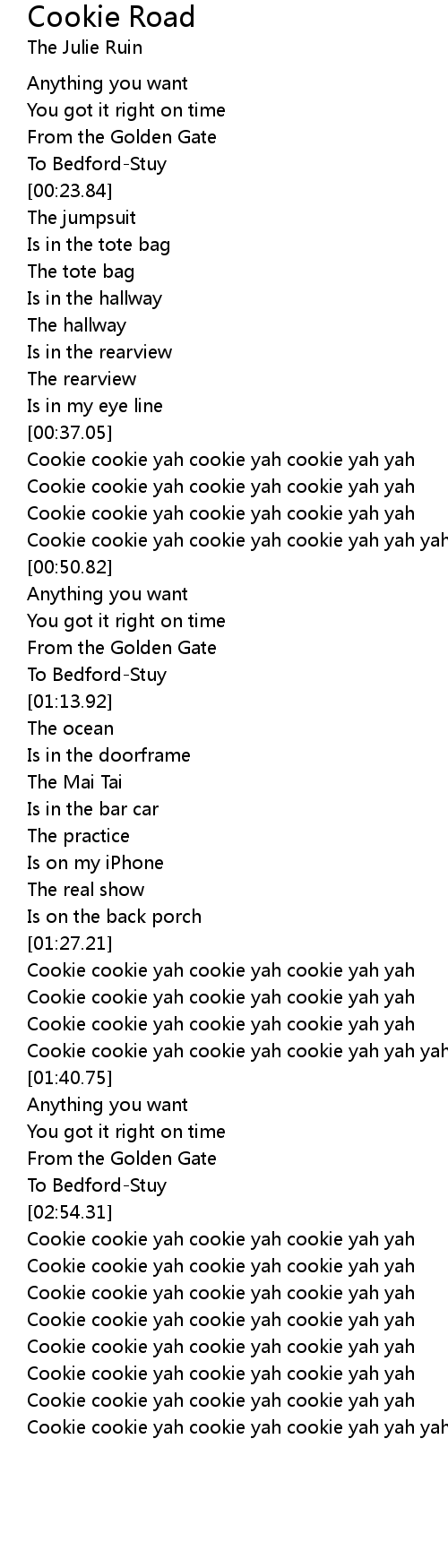 Cookie cookie yah cookie yah cookie yah yah yah |
