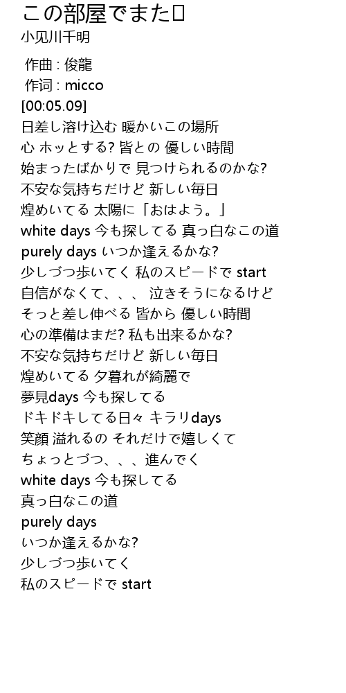 | [00:59.18] | white days 今も探してる 真っ白なこの道 |