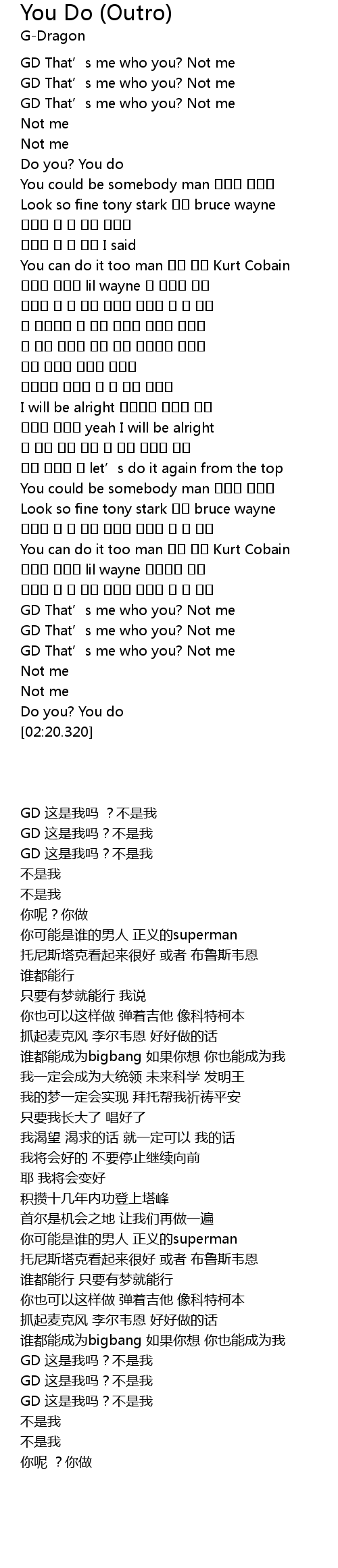 | [02:11.300] | GD That' s me who you? Not me |
