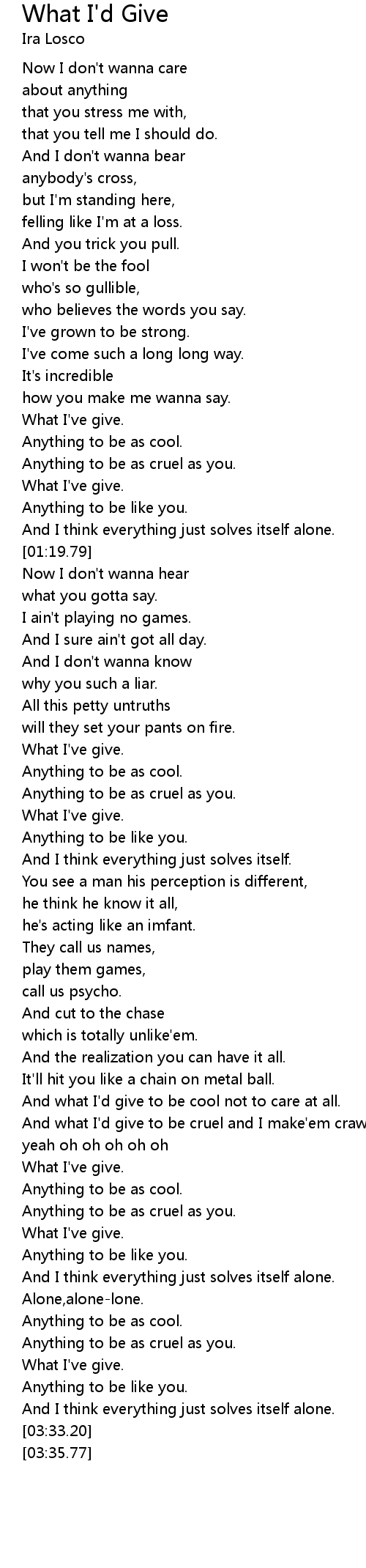 | [01:57.31] | What I've give. |