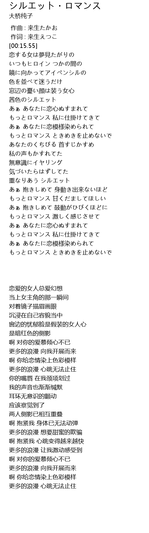 | [04:05.17] | もっとロマンス 私に仕掛けてきて |