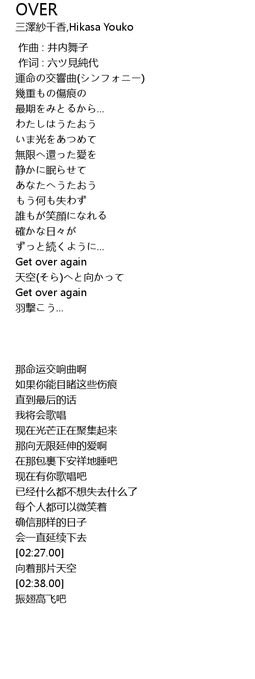 | [02:38.00] | Get over again |