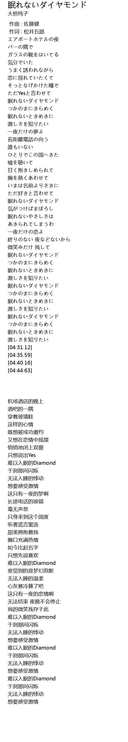 | [04:12.99] | 眠れないダイヤモンド |