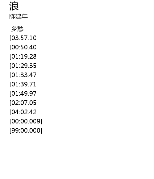 | [04:13.82][03:57.10][02:58.22][02:01.68][01:01.90][00:44.95] | 乡愁 |