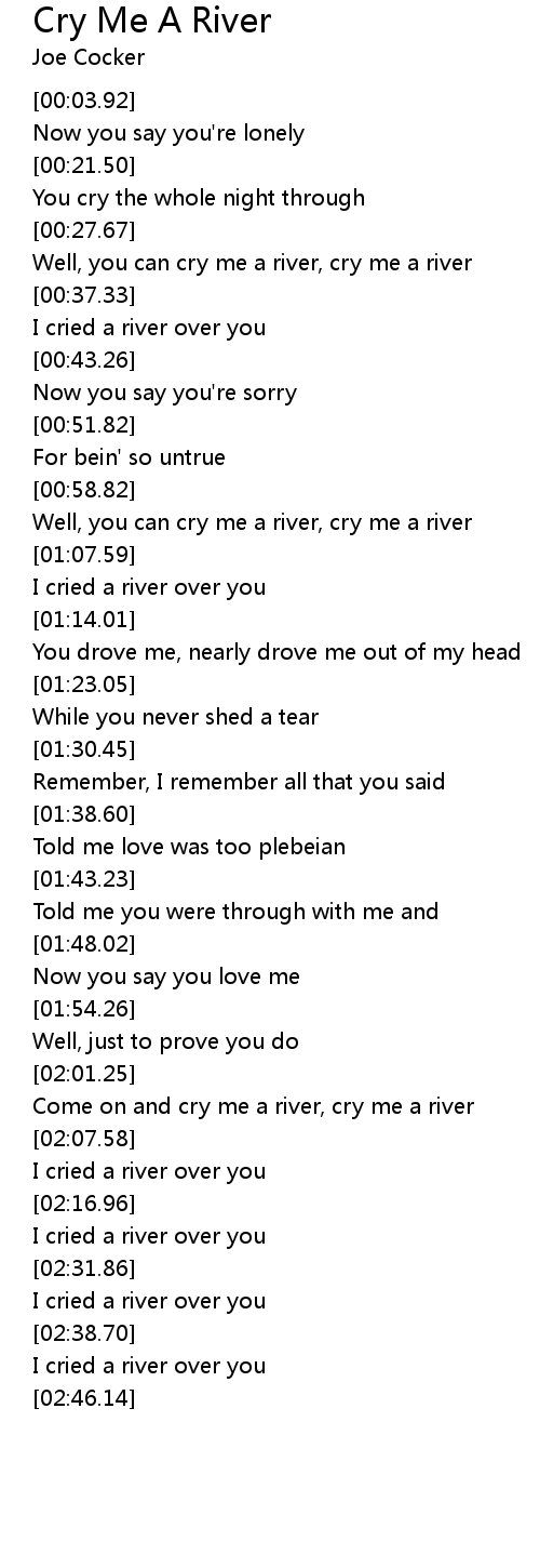 Come on and cry me a river, cry me a river |