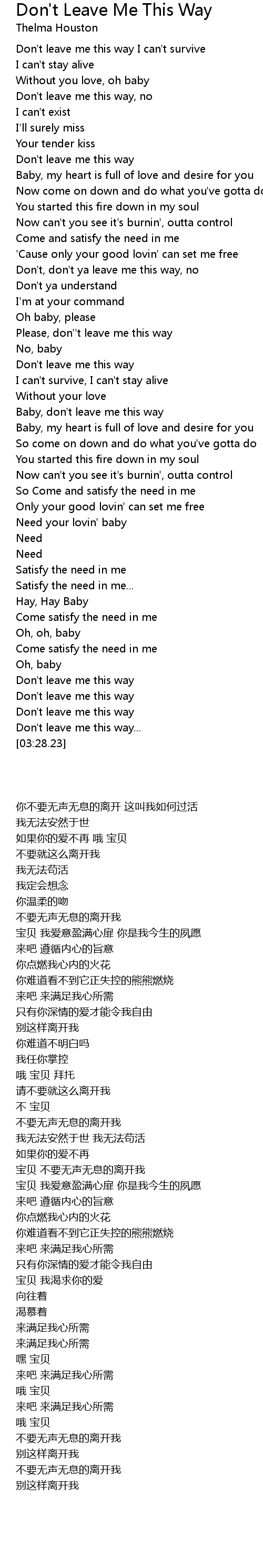 Don't leave me this way I can't survive |