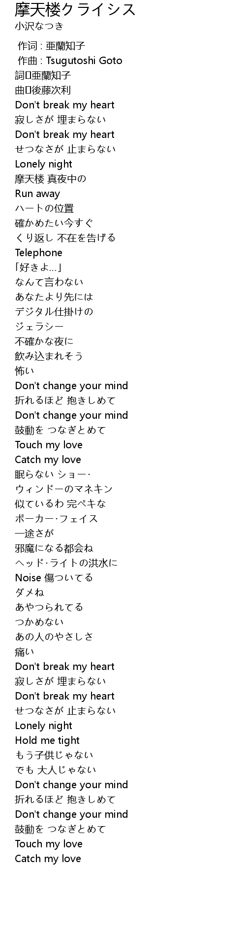 | [00:00.000] | 作词 : 亜蘭知子 |
