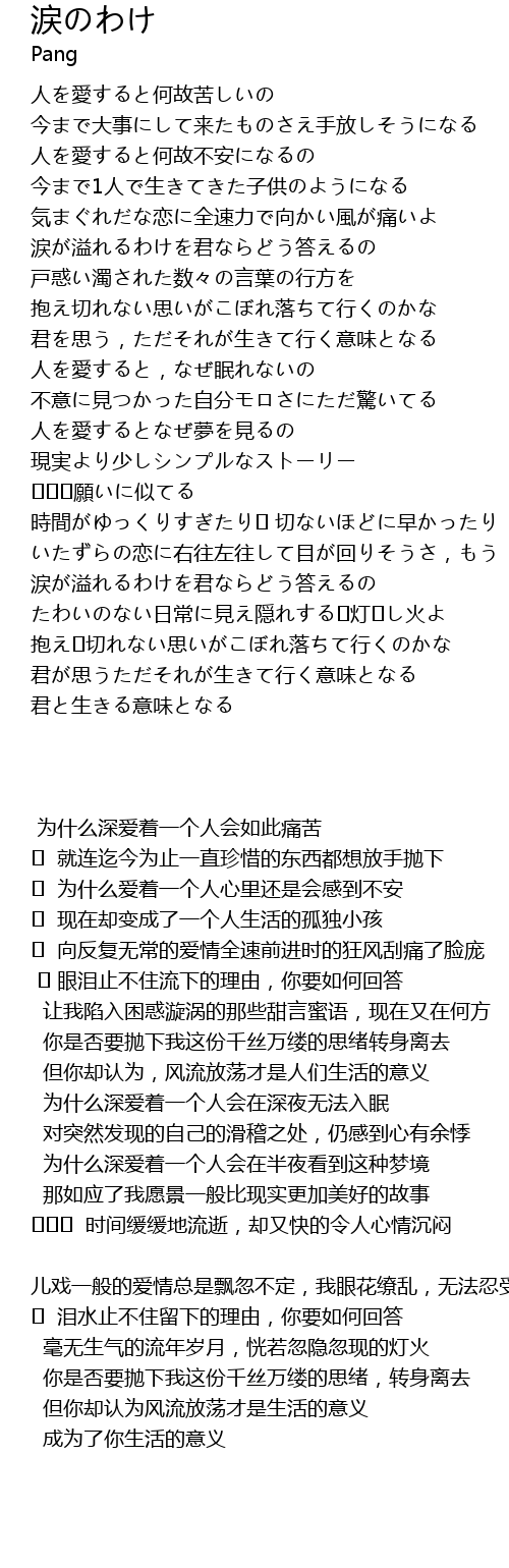 | Song | 涙のわけ |