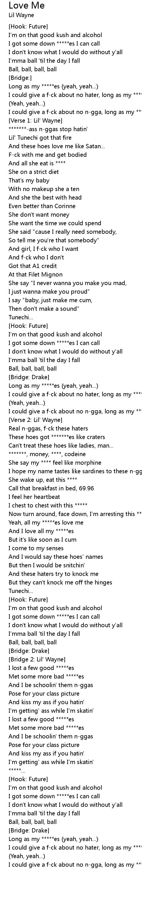 I could give a f-ck about no n-gga, long as my *****es love me |