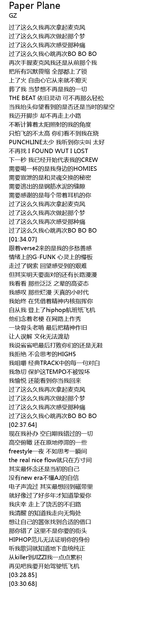 | [02:00.31] | 自从我 登上了hiphop航班纸飞机 |