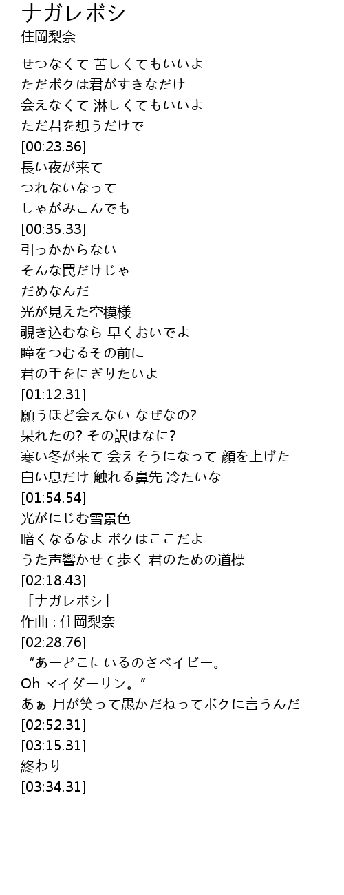 | [02:19.76] | 「ナガレボシ」 |
