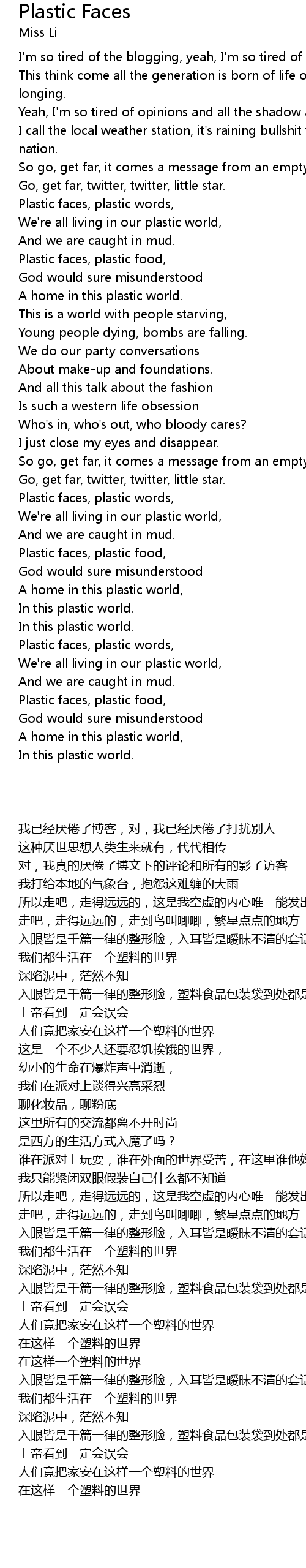 Plastic faces, plastic words, |