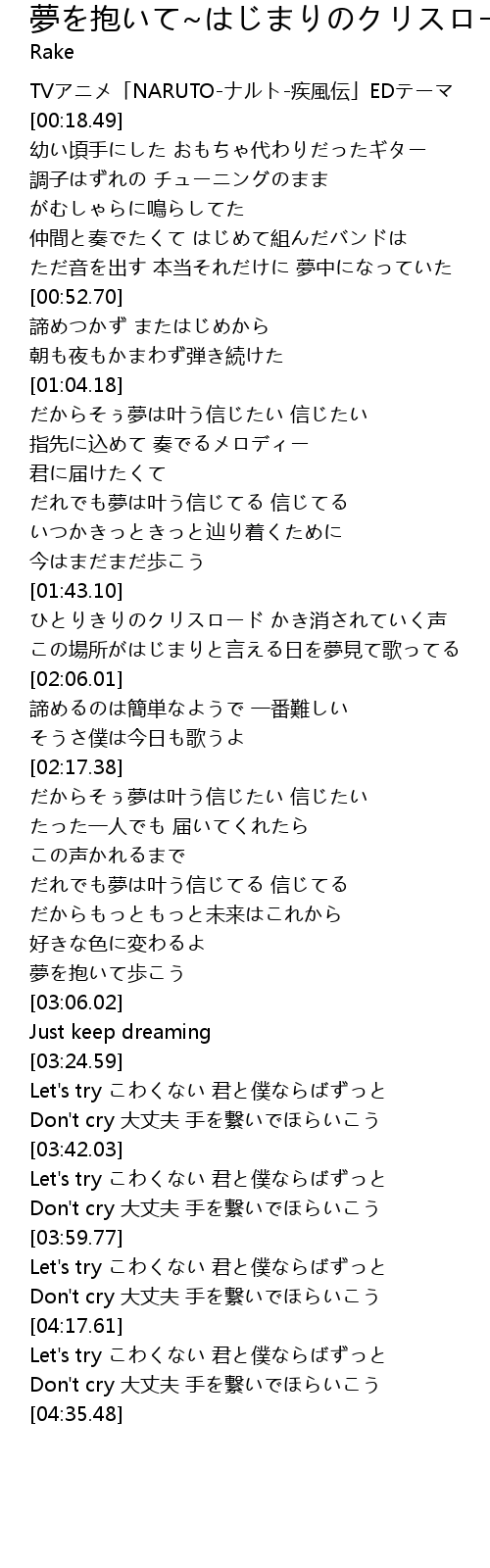| [00:13.57] | TVアニメ「NARUTO-ナルト-疾風伝」EDテーマ |
