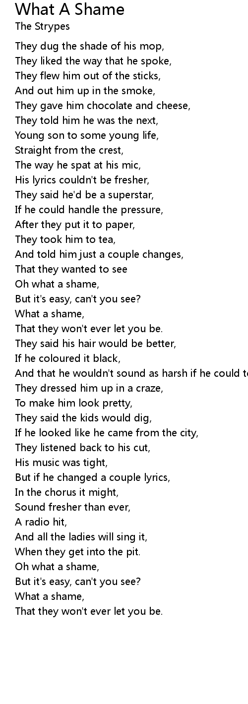 Oh what a shame, |