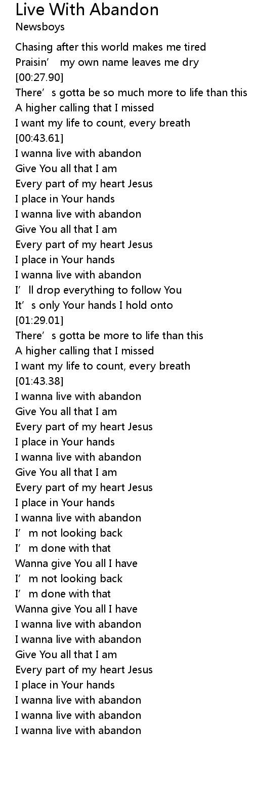 | [00:44.26] | I wanna live with abandon |