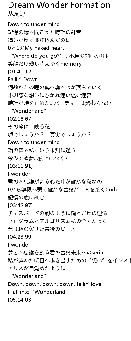 | [01:53.78] | 不思議な想いに惹かれ迷い込む迷宮 |
