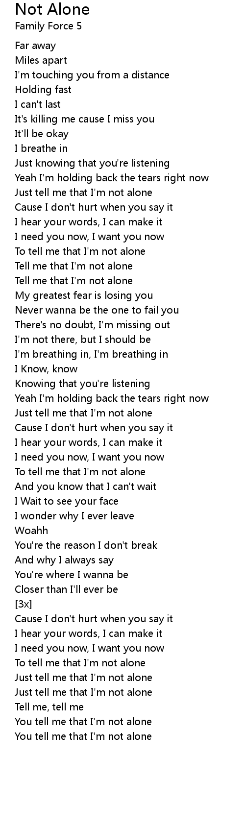 You tell me that I'm not alone |