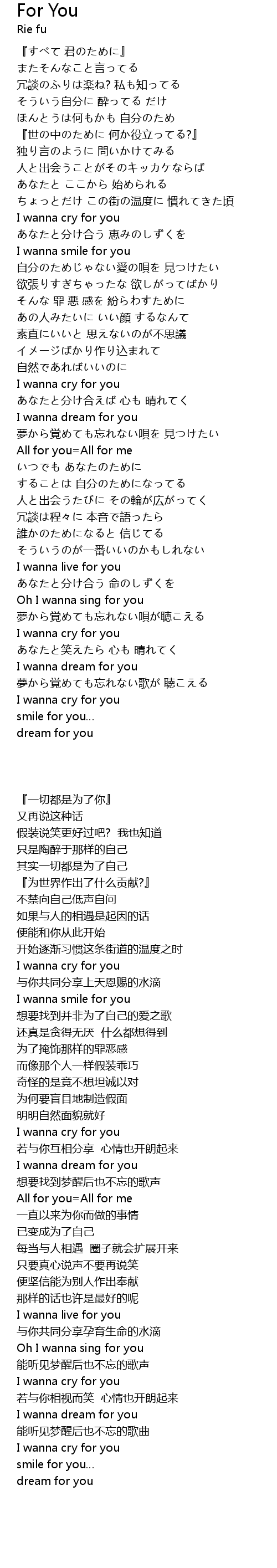 | [02:23.230] | All for you=All for me |