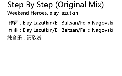 | [00:01.000] | 作曲 : Elay Lazutkin/Eli Baltsan/Felix Nagovski |