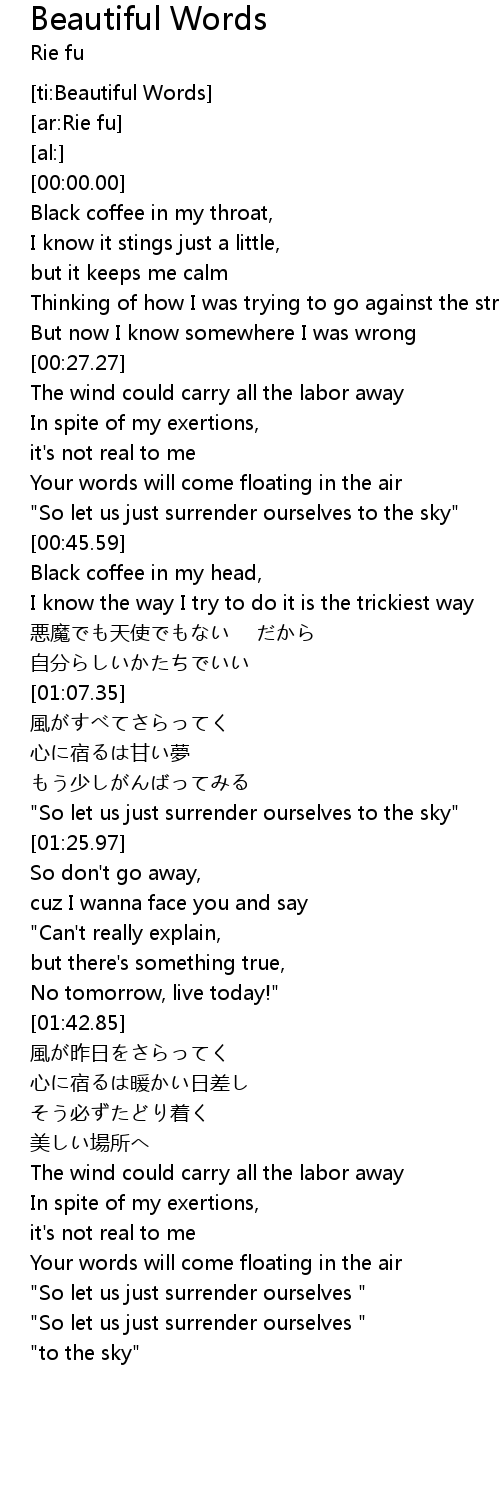 | [01:19.57] | "So let us just surrender ourselves to the sky" |