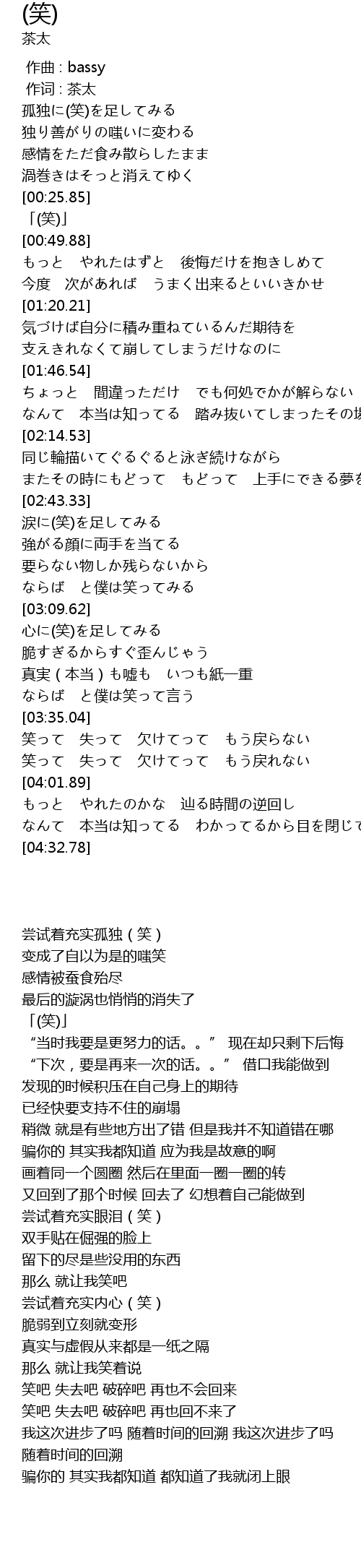 | [00:00.71] | 孤独に(笑)を足してみる |